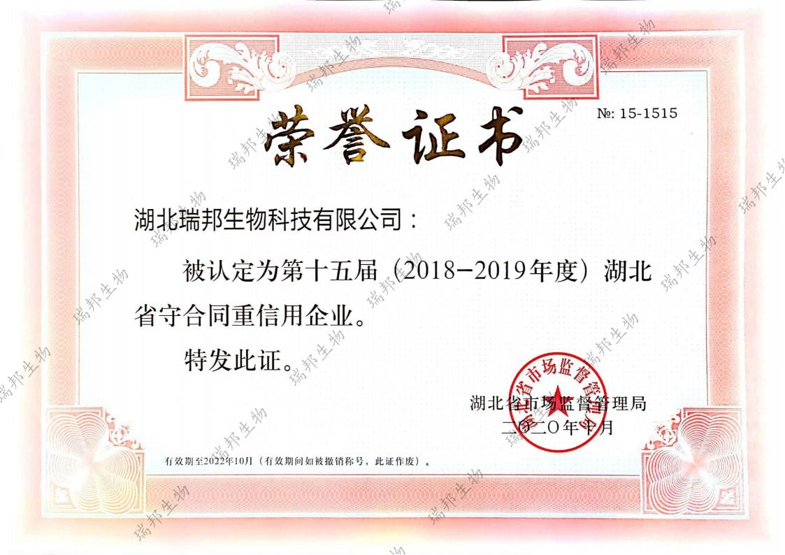 公司于2020年10月被認(rèn)定為湖北省守合同重信用企業(yè)