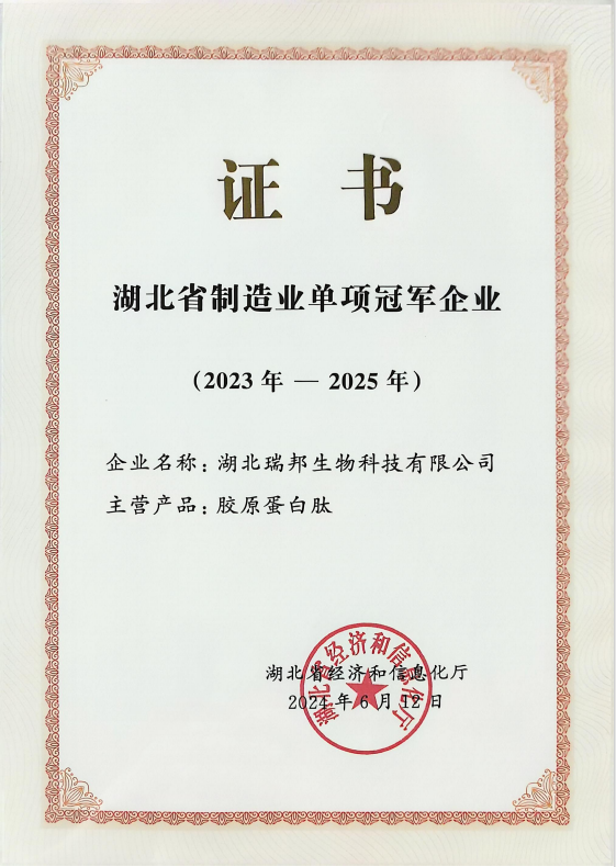 公司于2024年7月“膠原蛋白肽”入選《2024年度湖北省創(chuàng)新產(chǎn)品應(yīng)用示范推薦目錄》